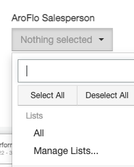 - Set the filters for Salesperson by selecting a team member. This will then refresh all of the dashlets to display results according to the filter selected.